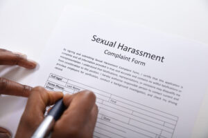 Human Hand Filling Sexual Harassment Complaint Form With Pen